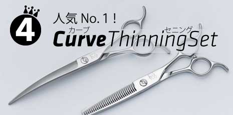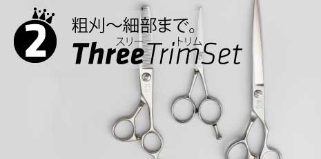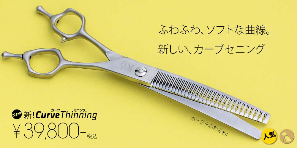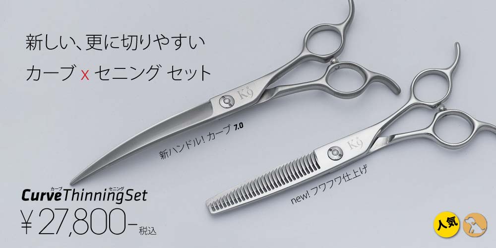 ロングシザーは粗刈りから仕上げまで、カーブシザーは顔や足回りの作業を簡単にするように、セニングはバランスよく、毛が折れない、パクつかない丁寧な仕上げを施しています。