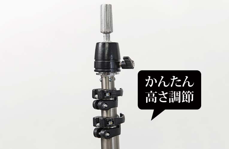 ・高級撮影照明スタンドと同じワンタッチカム式高さ調整器具!