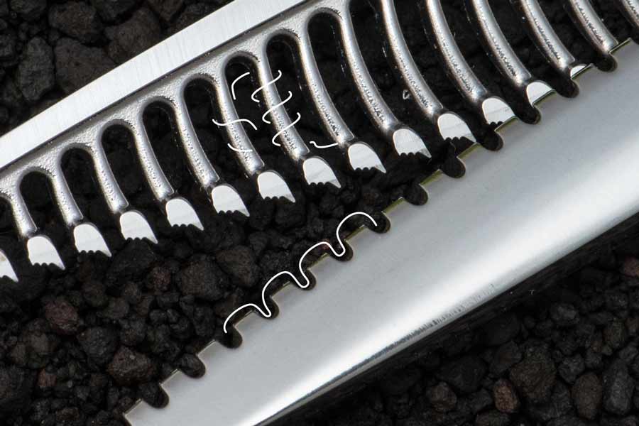 刃の一本一本の角を丸くすることで、