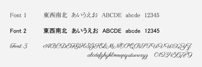 フォントは、 Font1 ~ Font3 の中からお選び下さい。