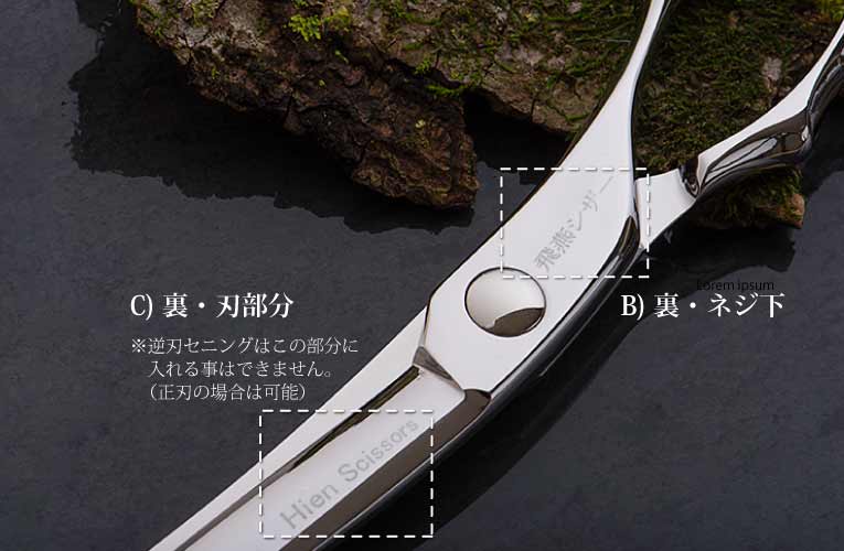 ・ シザー・セニング、詳しくは飛燕シザー (hien scissors) の 保障 についてをご参照下さい。