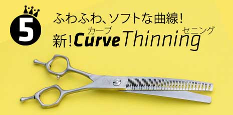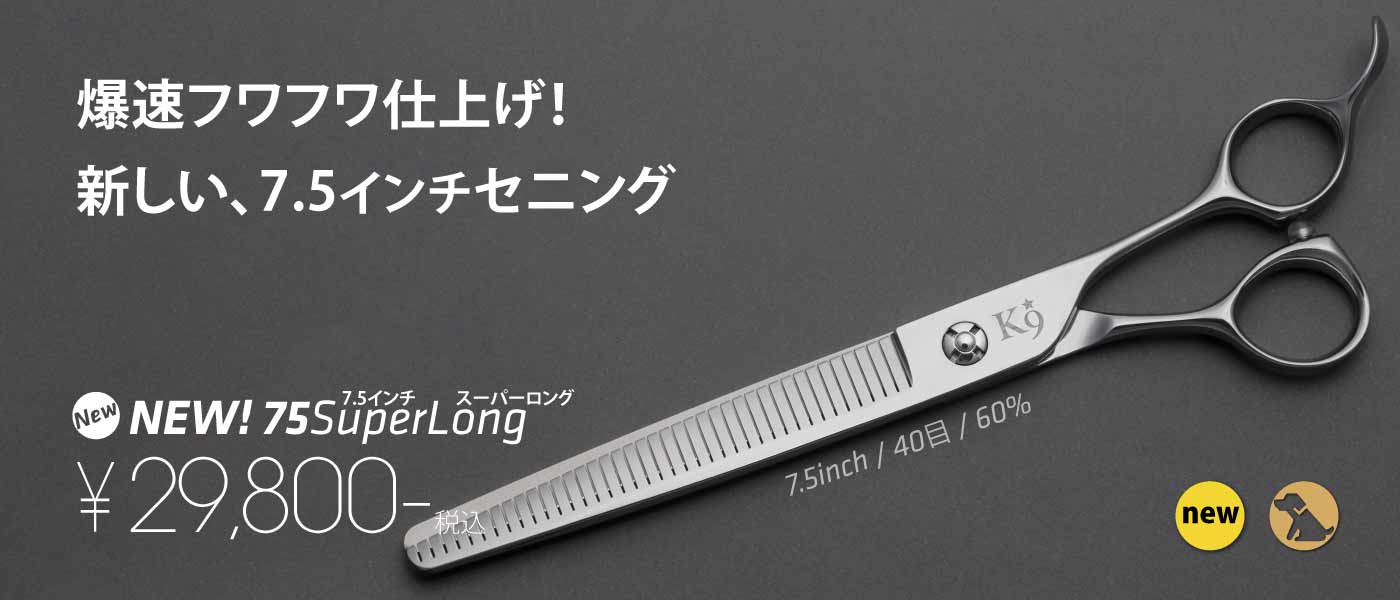 ロングシザーは粗刈りから仕上げまで、カーブシザーは顔や足回りの作業を簡単にするように、セニングはバランスよく、毛が折れない、パクつかない丁寧な仕上げを施しています。